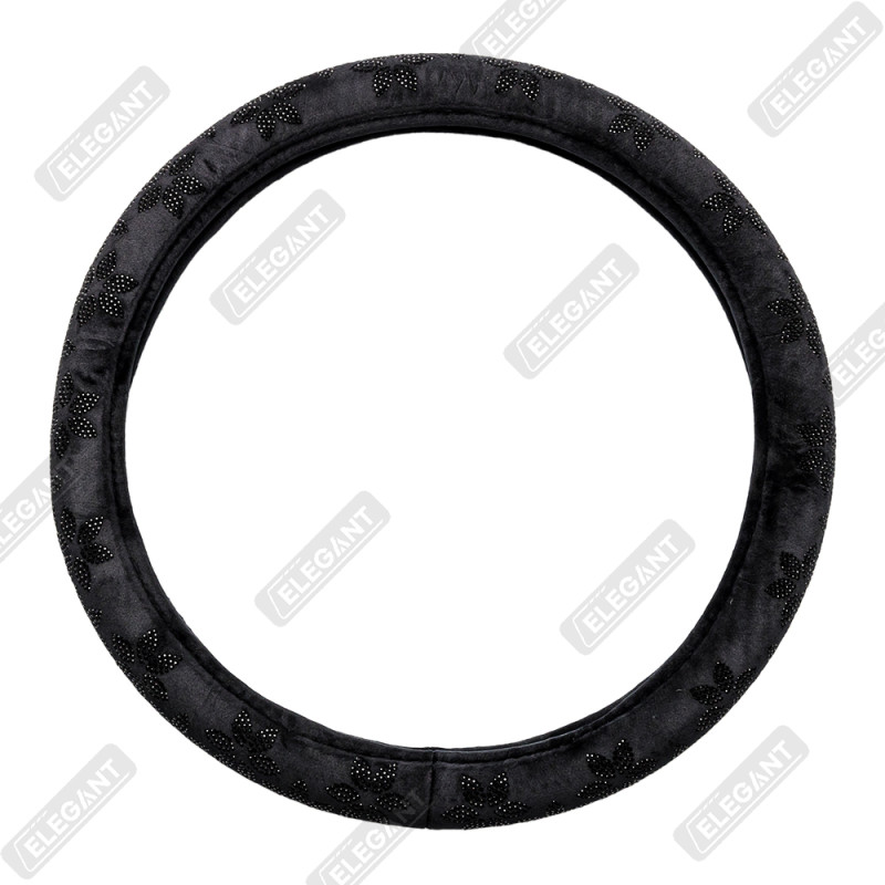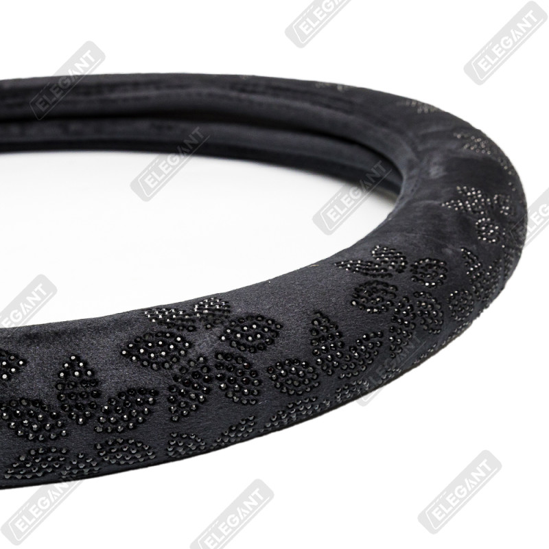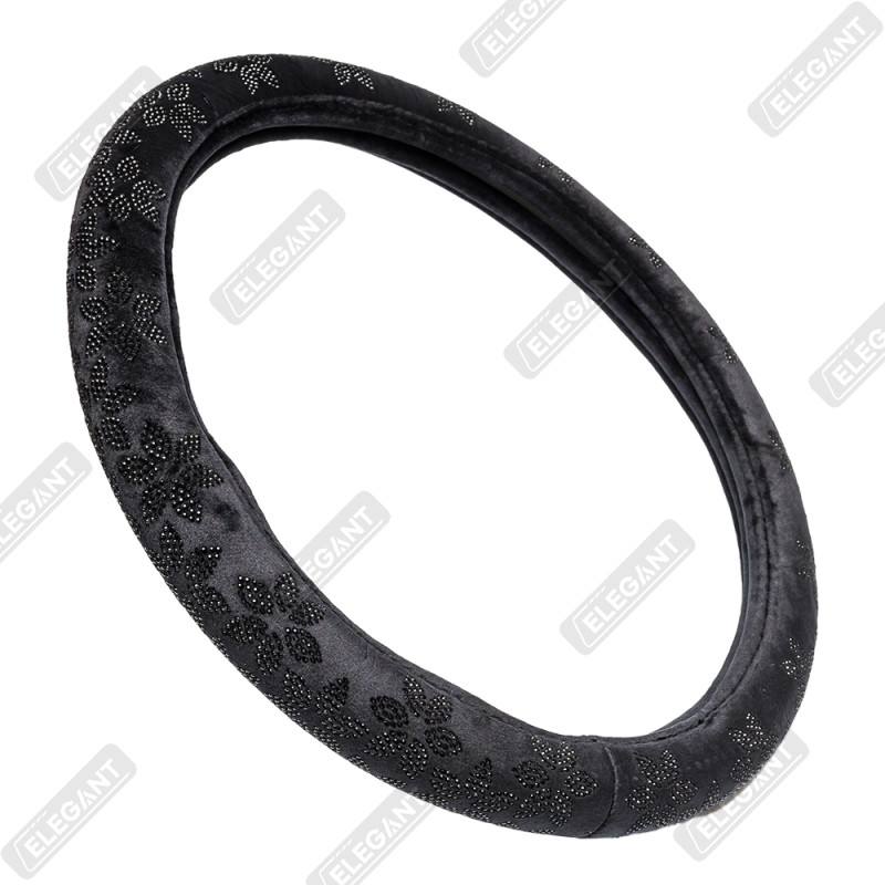 Чохол на кермо фланель "М" (37-38см) чорний Elegant 115211 квіти з чорним камінням