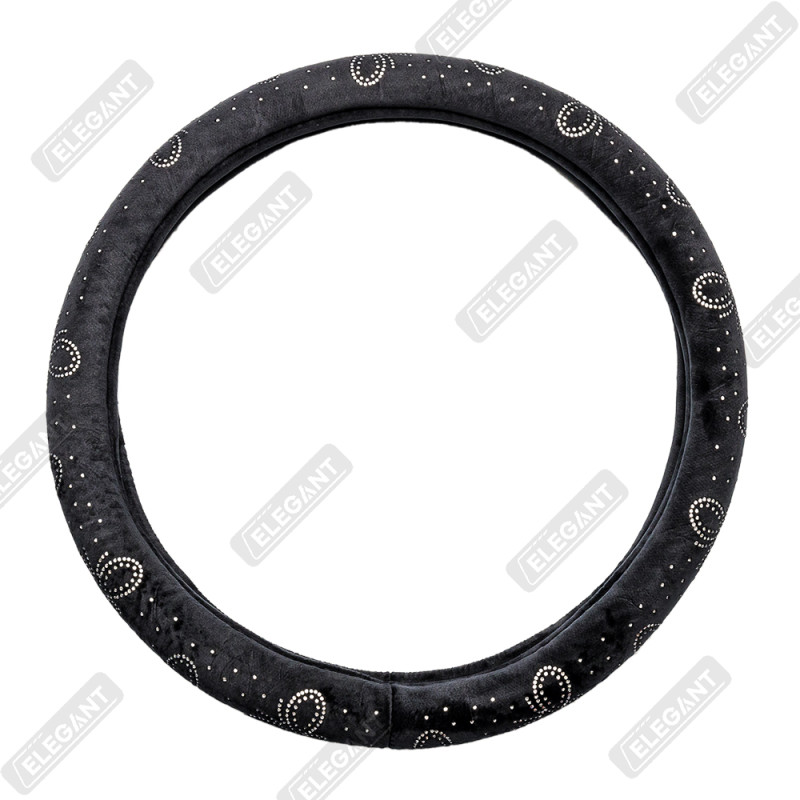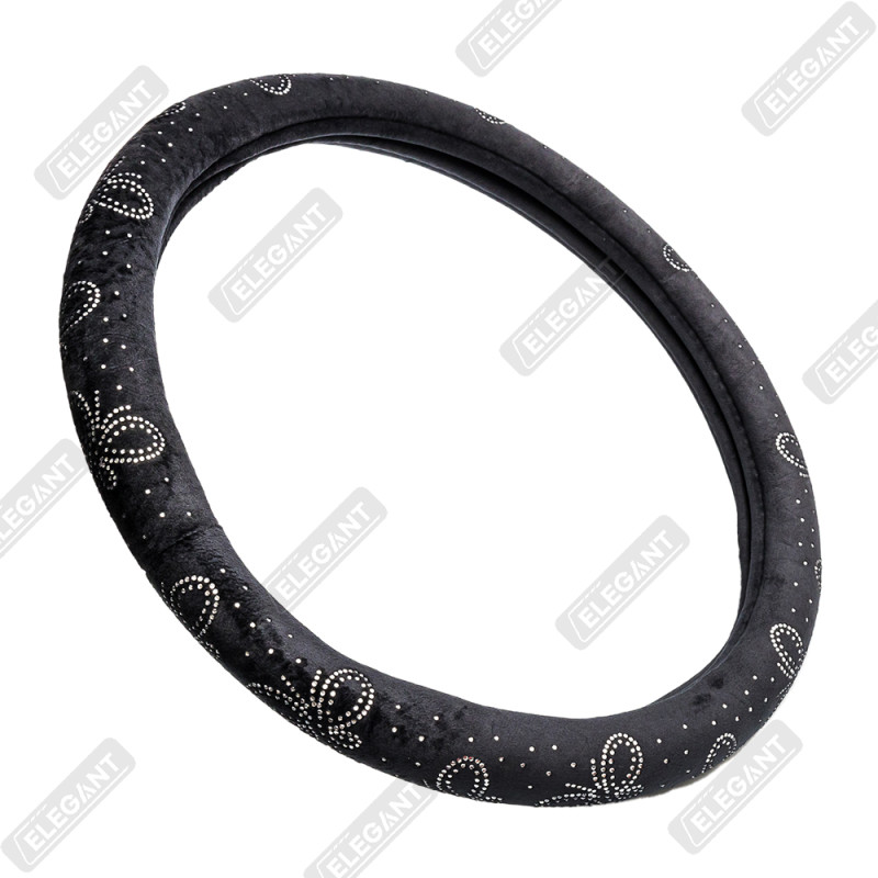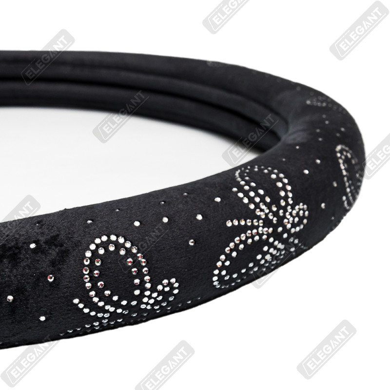 Чохол на кермо фланель "М" (37-38см) чорний Elegant 115261 метелик з білим камінням