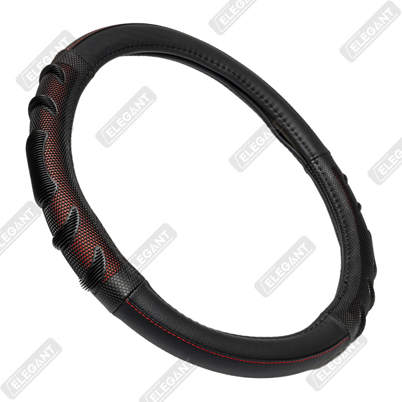 Чохол на кермо шкіра "M" (37-38см) чорний Elegant 115131 перфорація,масажер з червоною ниткою