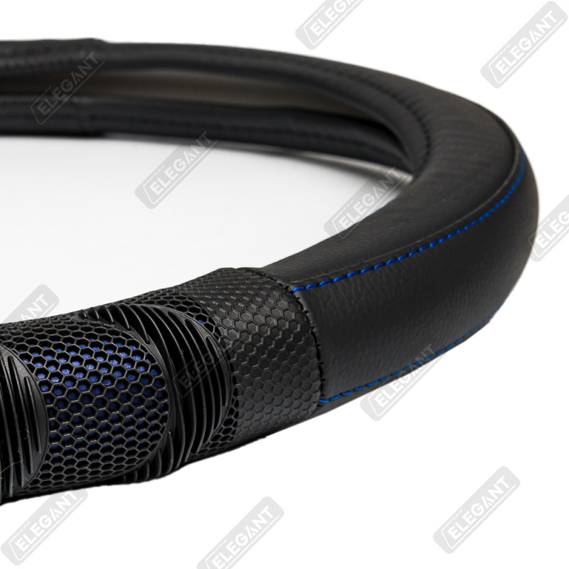 Чохол на кермо шкіра "S" (36см) чорний Elegant 115050 масажер,синя нитка