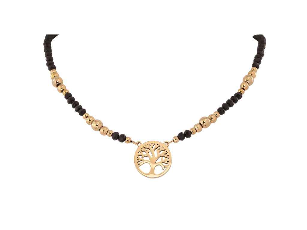 Кольє ТТМ Stainless Steel 14К Чорно- золотисті намистини та підвіска дерево життя 45-50см*3-5мм арт.308128 ТМ XUPING