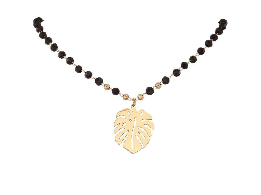 Кольє ТТМ Stainless Steel 14К Чорне намисто з підвіскою листок 45-50см*3-4мм арт.308144 ТМ XUPING