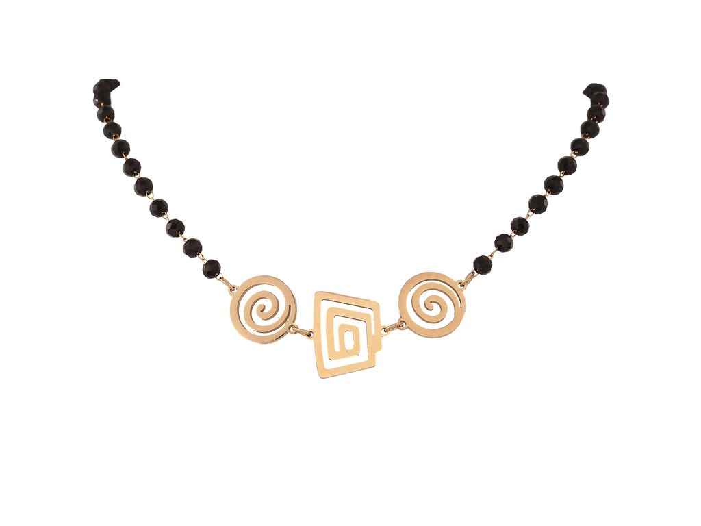 Кольє ТТМ Stainless Steel 14К Чорне намисто з декоративною вставкою 44-49см*4-16мм арт.308146 ТМ XUPING
