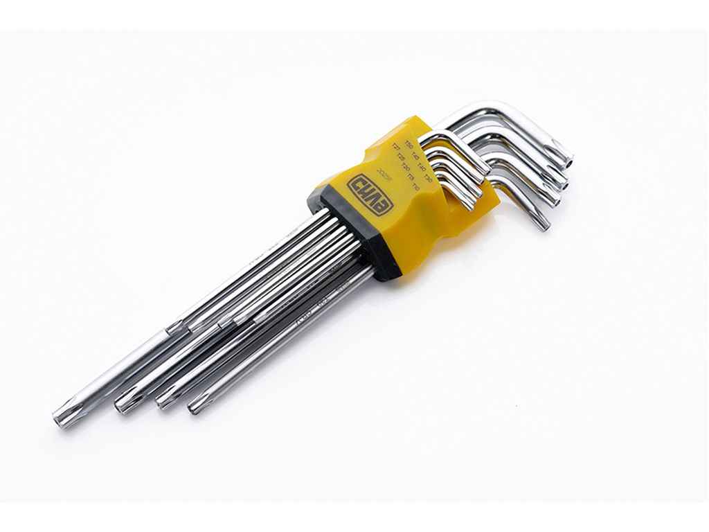 Набір ключів Т10, Т15, Т20, Т25, Т27, Т30, Т40, Т45, Т50 торцевих Torx довгих CrV 9шт ТМ СИЛА