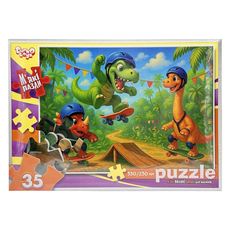 Дитячі м'які пазли "Динозаври на скейтах" S35-11-14, 35 елементів