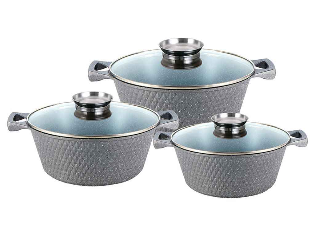 Набір посуду 3пр. каструль круглих 2/3,6/5,6л алюм. з скл.кр. індукц. Сірий YS80CS - G ТМ ZAUBERG