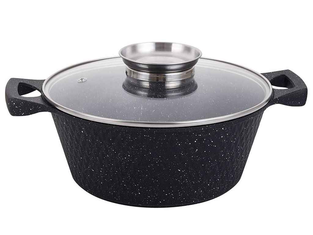Каструля 2л кругла алюм. з скл.кр., індукц. Чорна YS8020-B ТМ ZAUBERG