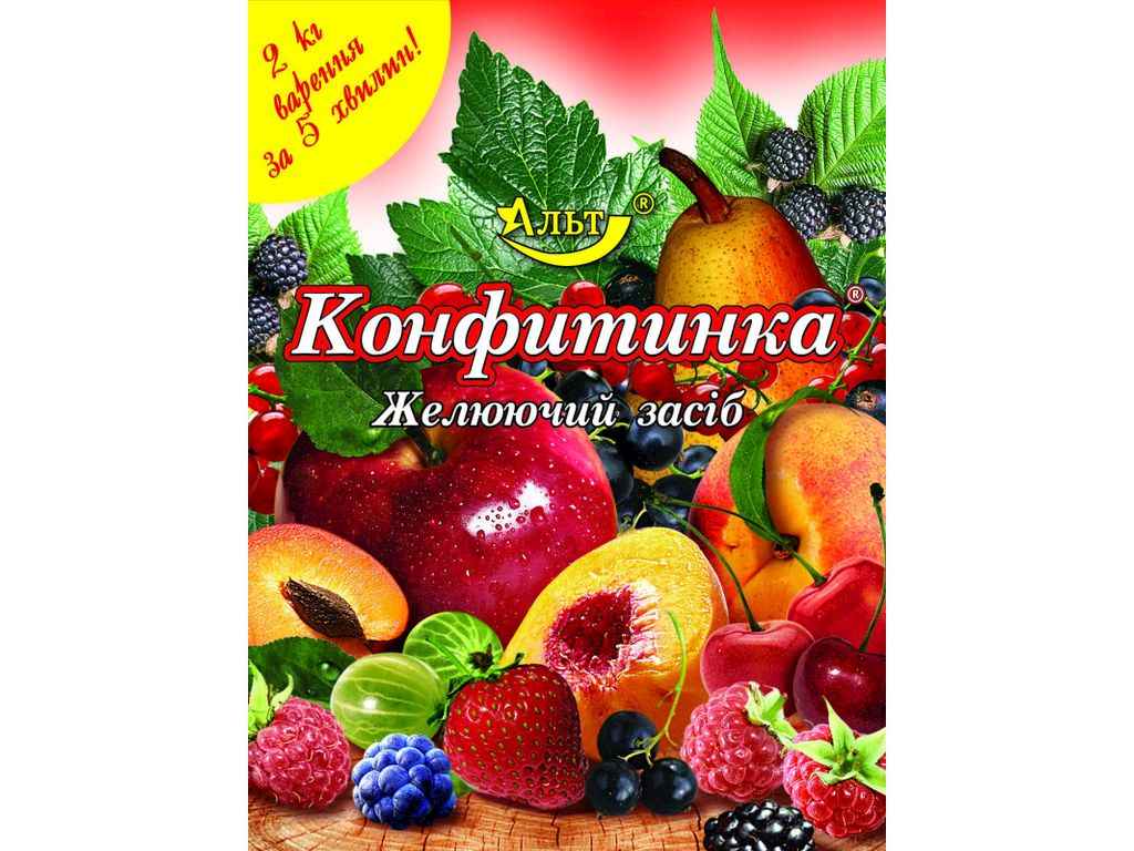 Натуральна суміш для швидкого приготування варення, джему, повидла. Конфітинка містить велику кількість пектину, отриманого з яблук та цитрусових плодів, що має високі желіруючі якості. Завдяки цьому значно скорочується час приготування варення, зберігається велика кількість вітамінів, смак, аромат, колір свіжих ягід та фруктів. Спосіб приготування: