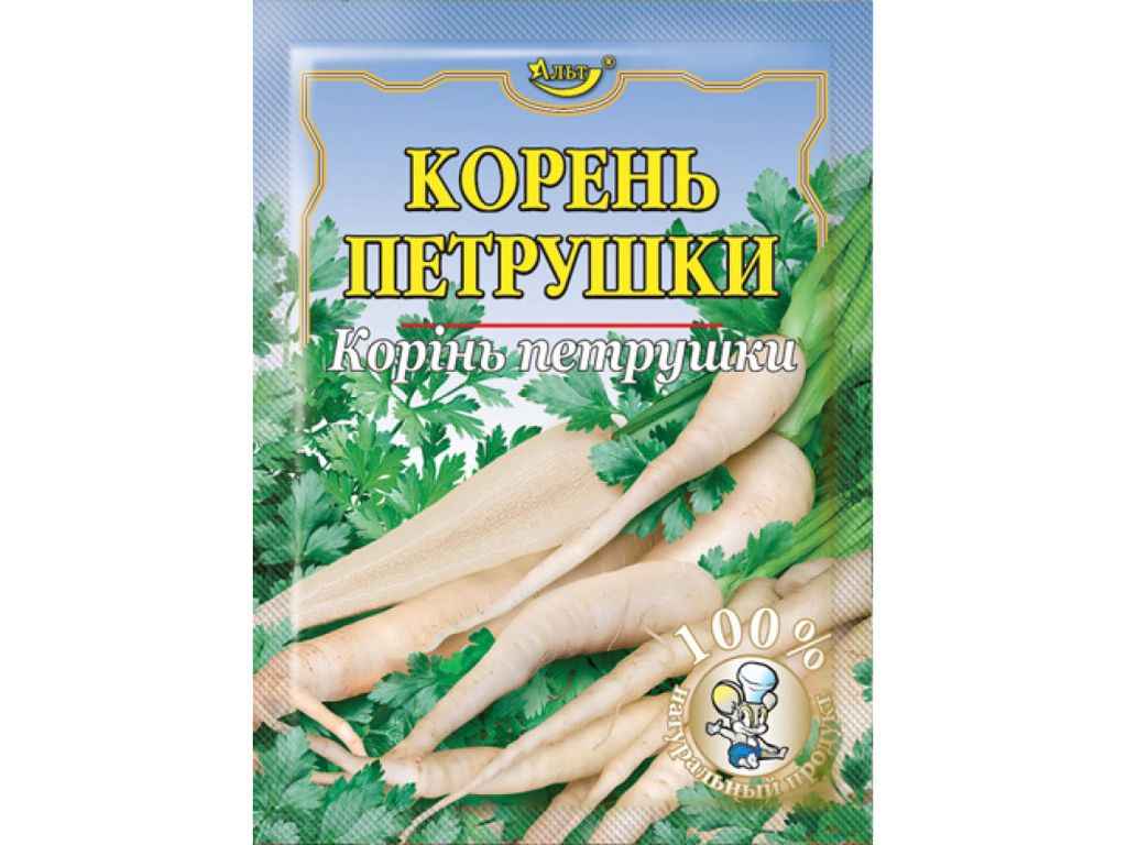 Корінь петрушки – пряна травяниста рослина – додають у соуси, супи, консерви. Корінь петрушки вигідно відтіняє спеціальні суміші прянощів для супів та риби. Також використовується для приготування домашніх солінь. Корінь петрушки багатий на вітаміни і мінеральні речовини. Склад: корінь петрушки. Термін зберігання: 12 місяців. Зберігати в сухому прохолодному місці при температурі не вище ніж 25°С і відносній вологості повітря не більше 70%.