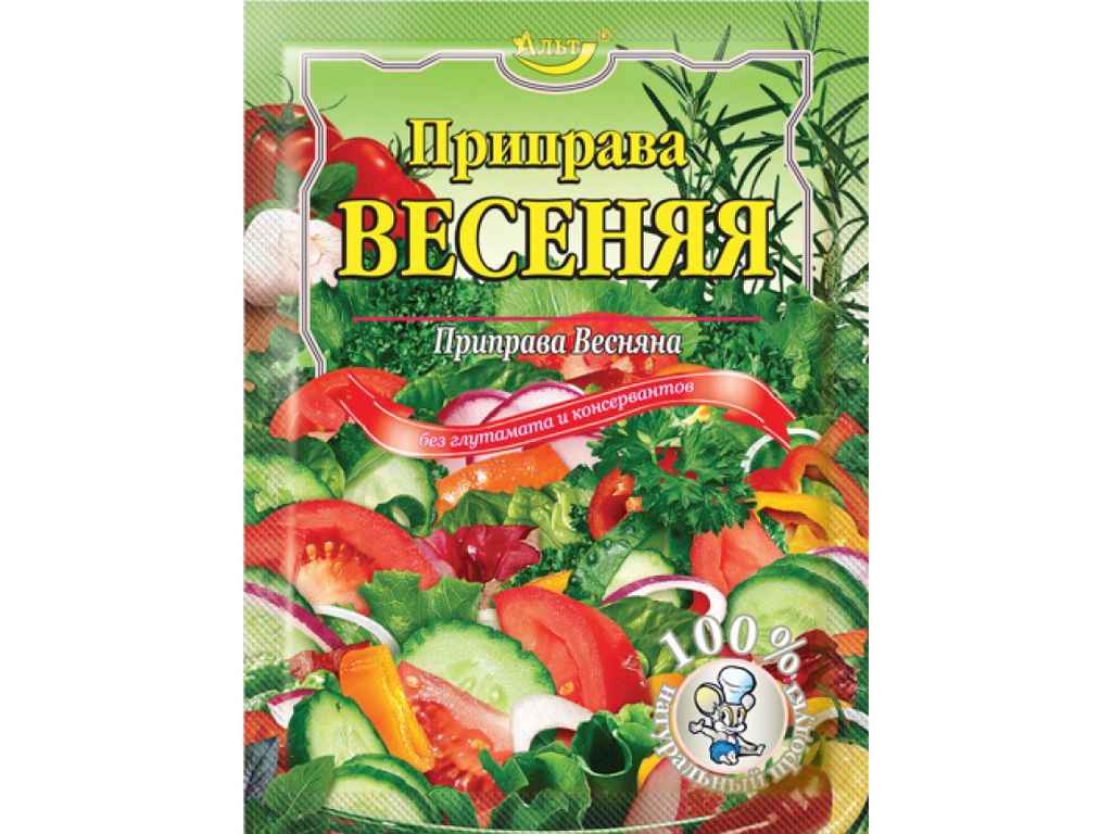 Суміш пряно-ароматична. Оригінальна суміш спецій, прянощів та сушених овочів, яка розроблена на основі традиційних рецептів. Приправа є невідємним компонентом у приготуванні овочевих, мясних та рибних страв, салатів та різних соусів. Вона додасть вашій страві весняного настрою будь-якої пори року.