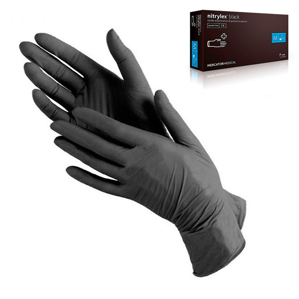Рукавички нітрилові Nitrylex M тонкі чорні (Польща) (50пар/уп)
