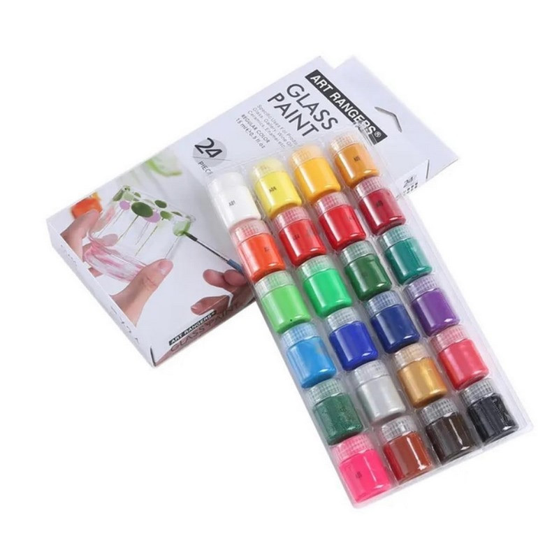 Набір фарб для скла GAS2415, 15 мл, 24 кольори, 3 пензлика
