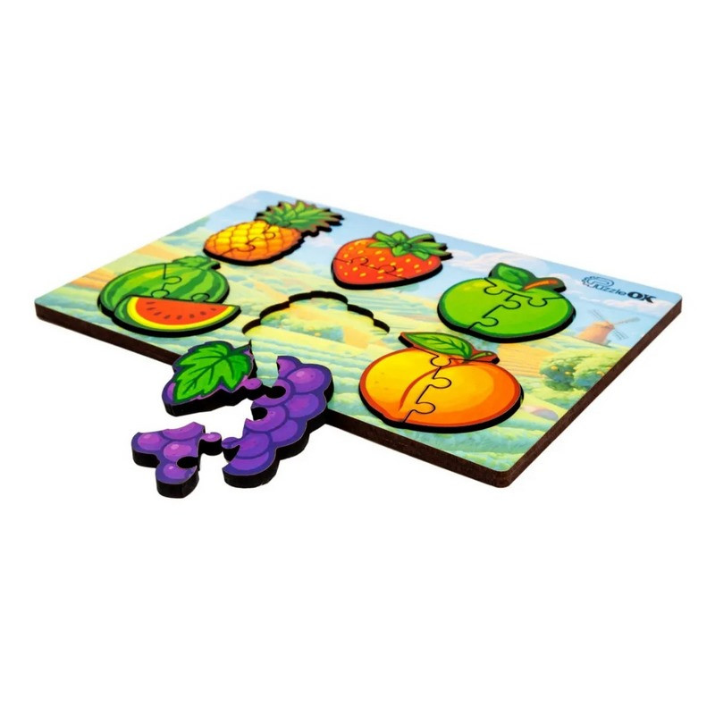 Дерев'яний пазл-вкладиш "Розумний світ: Веселі фрукти" Puz-88749 А5, 18 елементів