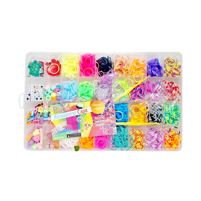 Яскравий набір для плетіння браслетів викликає справжній захват і надихає на творчість. Діти із задоволенням створять власні прикраси. Можна експериментувати з кольорами, формами та дизайнами, відчуваючи себе справжніми дизайнерами аксесуарів.Плетіння з гумок розвиває дрібну моторику, фантазію, уважність і терпіння. Процес допомагає зосередитись, тренує посидючість та викликає відчуття радості від власноруч створених прикрас, які можна носити або дарувати друзям.Зручний пластиковий органайзер дозволяє зберігати всі елементи впорядковано та легко брати набір із собою. Ідеальний варіант для творчого дозвілля вдома або в дорозі.Комплектація:- різнокольорові гумки;- 2 гачки для плетіння;- гачки для прикрас;- намистини;- декоративні підвіски.Органайзер: пластиковий.