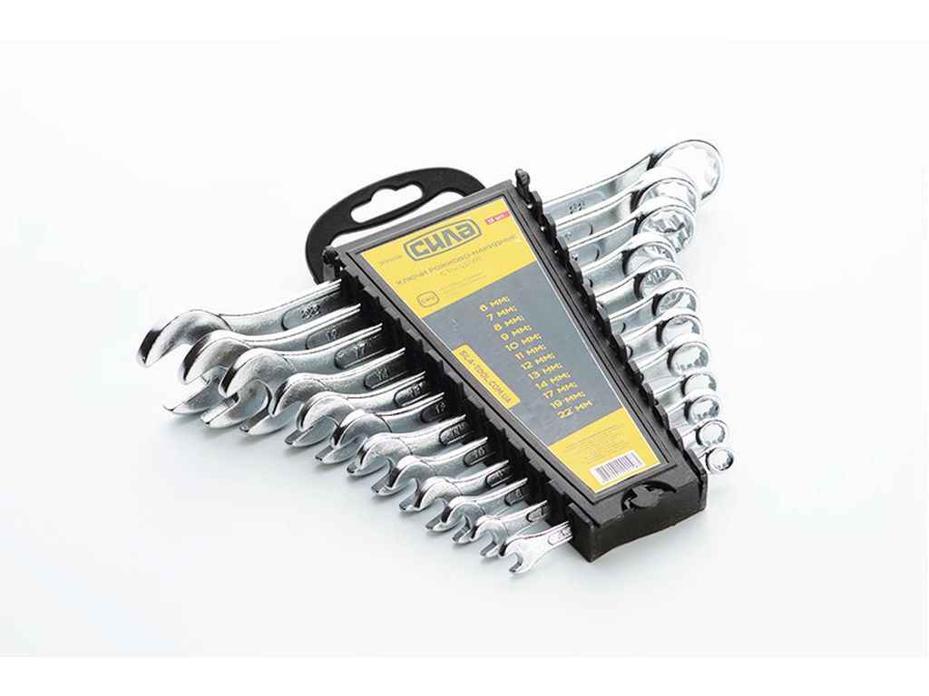 Набір ключів 12 Cr-V ріжково-накидних Стандарт (6,7,8,9,10,11,12,13,14,17,19,22мм) ТМ СИЛА