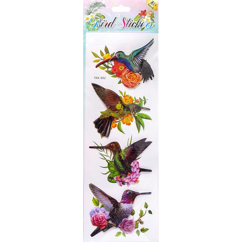 Набір голографічних наклейок "Колібрі" FAX-002, 14х43 см, 8D, 4 картинки
