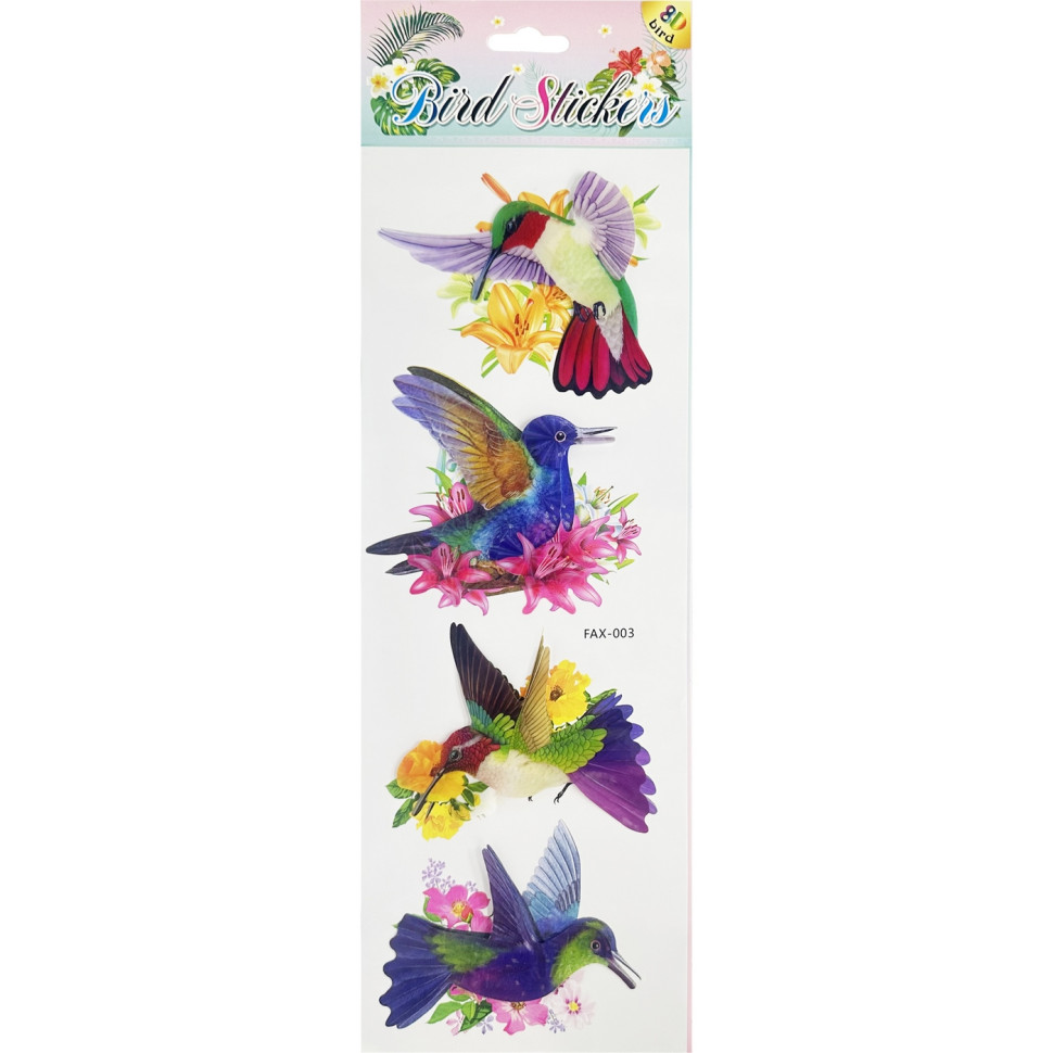 Набір голографічних наклейок "Колібрі" FAX-003, 14х43 см, 8D, 4 картинки