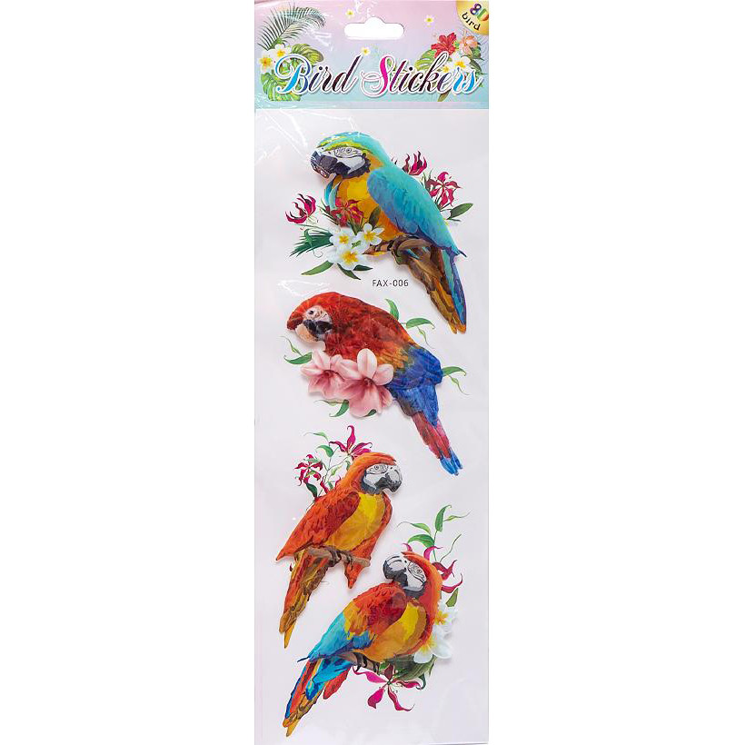Набір голографічних наклейок "Папуги" FAX-006, 14х43 см, 8D, 4 картинки