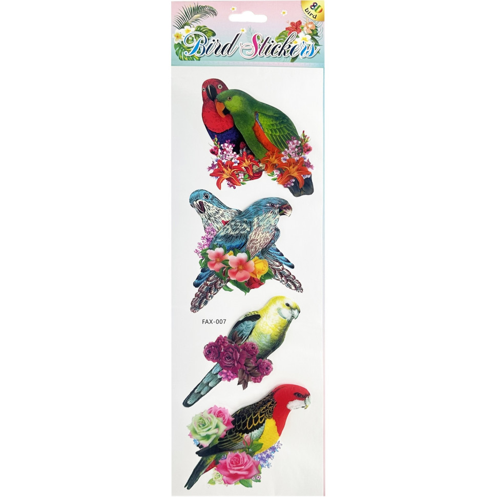 Набір голографічних наклейок "Папуги" FAX-007, 14х43 см, 8D, 4 картинки