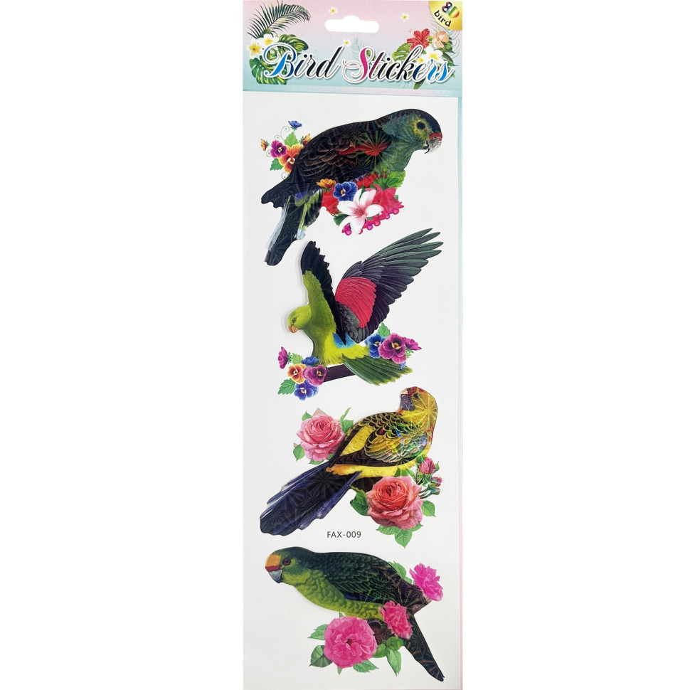 Набір голографічних наклейок "Папуги" FAX-009, 14х43 см, 8D, 4 картинки