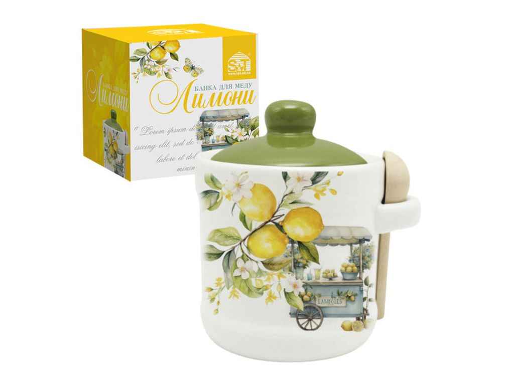 Банка для меду 350мл з деревяною ложкою Лимони 700-04-22 ТМ SNT
