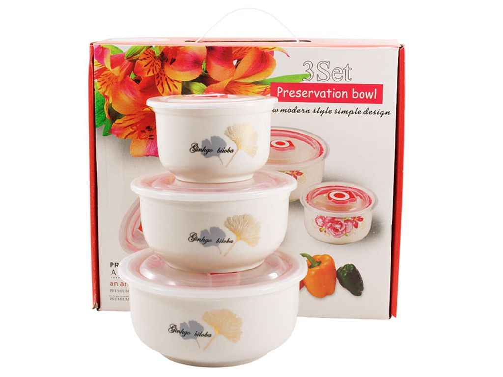 Набір судків 3шт. Фарфор судків з кришками 240/440/650 Листок (под.уп.) 5402 ТМ PRC