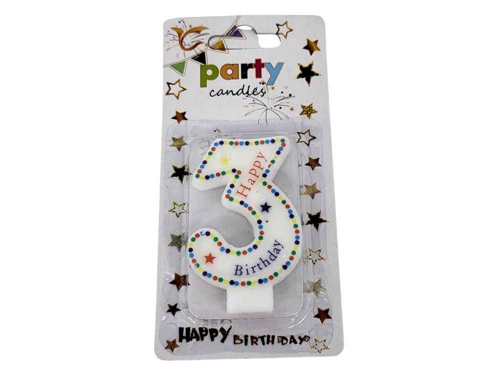 Свічка-цифра 3 Happy Birthday крапочки арт.068 ТМ PRC