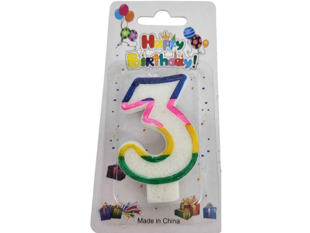Свічка-цифра 3 Веселка арт.033 ТМ PRC