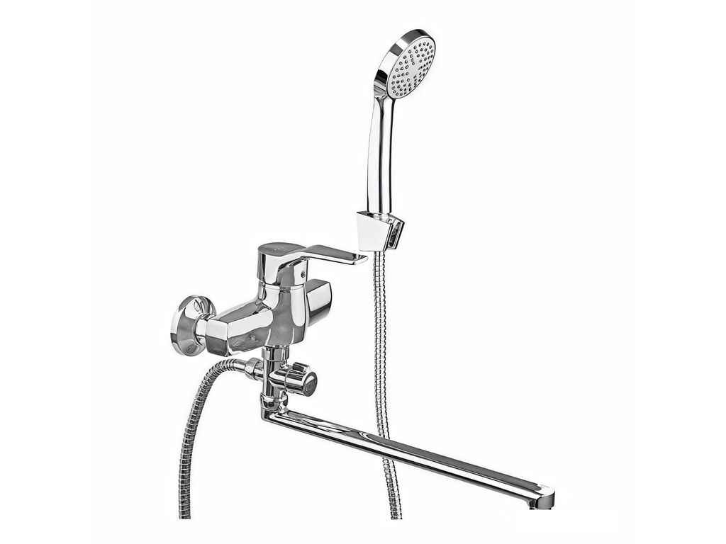 Змішувач для ванни має хромоване покриття, що значно полегшує догляд, а також запобігає утворенню іржі на виробі. Комплектується лійкою з одинарним режимом роботи, шлангом, тримачем під лійку, ексцентриками, гумами ущільнювачів і декоративними вставками. Змішувач для ванни встановлюється на стіну із жорстким підведенням води.