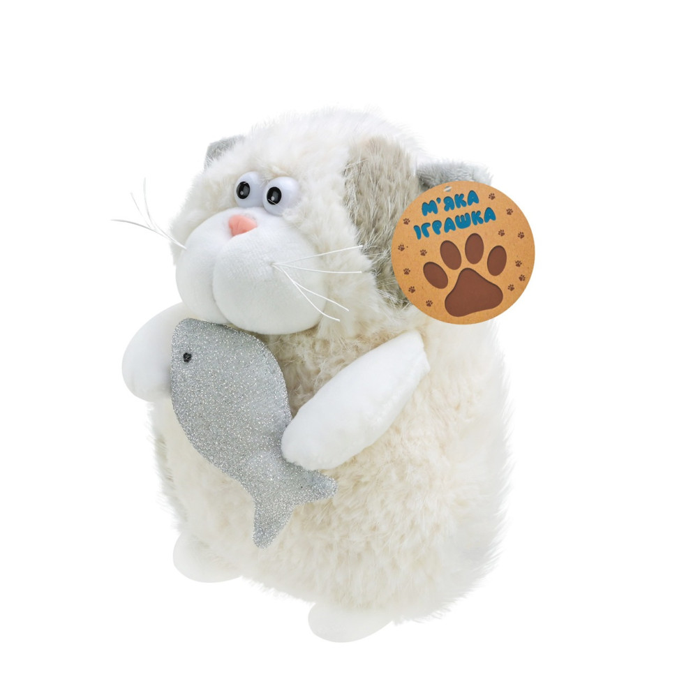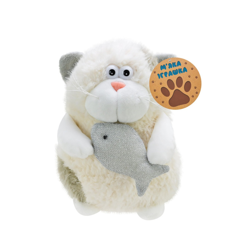 Дитяча м'яка іграшка "Кумедний кіт" C6302 з рибкою, розмір 20 см