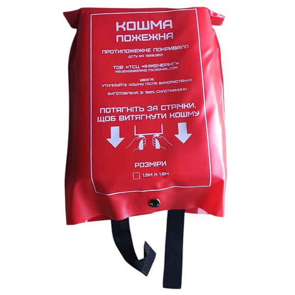 Кошма протипожежна служить для гасіння загорянь, використовується при зварювальних роботах, обов'язкова комплектація пожежних щитів.Виготовлена ​​з брезента з вогнестійким просоченням, що має високі вогнезахисні властивості. Кошма призначена для: локалізації горіння у початковій стадії пожежі; гасіння палаючого одягу на постраждалих; захисту конструкцій та обладнання під час проведення вогневих робіт; гасіння вогню, викликаного горінням ПММ, ГР, ЛЗР та інших горючих матеріалів, шляхом припинення доступу кисню. Кошма протипожежна забезпечує гасіння модельного вогнища пожежі класу протягом однієї хвилини і локалізацію горіння модельного вогнища пожежі класу А протягом 5 хвилин. Упаковка та спосіб укладання кошми забезпечують її розкриття за час менше 4 секунд.