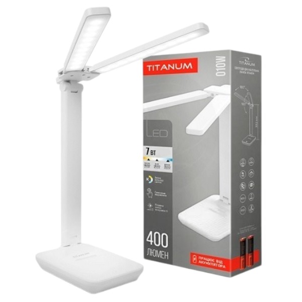 Світильник настільний LED з акумулятором 1200mAh х 2, Білий 7W (2700K /4000K /6500K) 400 Лм Titanum