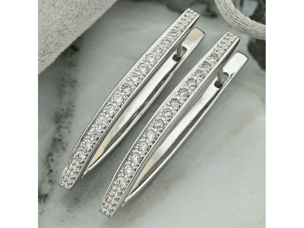 Сережки англійська застібка Діамантові стрілки 26590 37х3мм білі фіаніти позолота Біле Золото ТМ XUPING