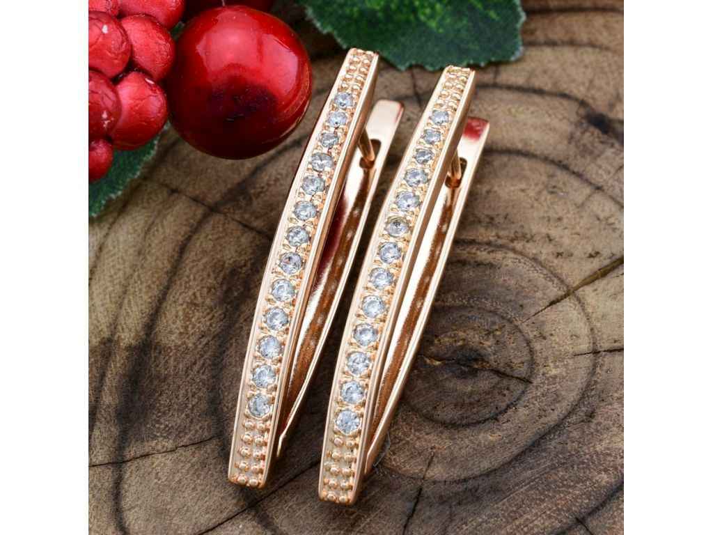 Сережки англійська застібка Діамантові стрілки 26590 37х3 мм білі фіаніти позолота 18К ТМ XUPING