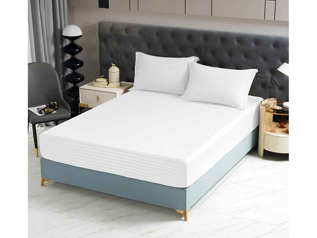 Простирадло на резинці 160*200 страйп-сатін наволочки 50*70 арт.22119-20 білий ТМ MALLORY HOME