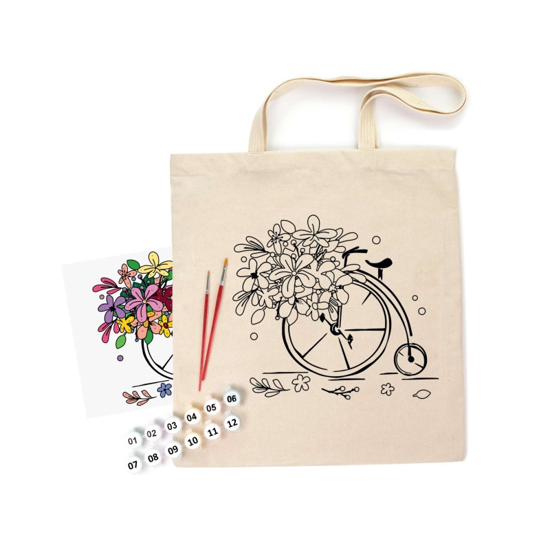 Набір екосумка-розмальовка "Квітковий велосипед" N0003606 бавовна 220 г/м2, 38х42 см