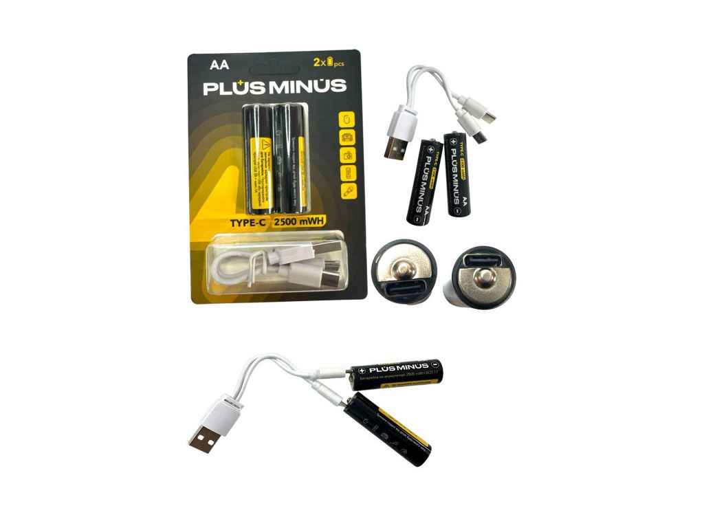 Аккумуляторы R06 AA PlusMinus 2500 mWh. Перезаряжаемые аккумуляторы формата AA (пальчиковые) от PlusMinus — это удобство, экономия и забота об экологии. Оснащены встроенным портом Type-C без необходимости использования внешнего зарядного устройства. Комплектация: 2 аккумулятора зарядный кабель. Важно: перезаряжайте только через порт USB, или через зарядное устройство USB 5V – max 1A.