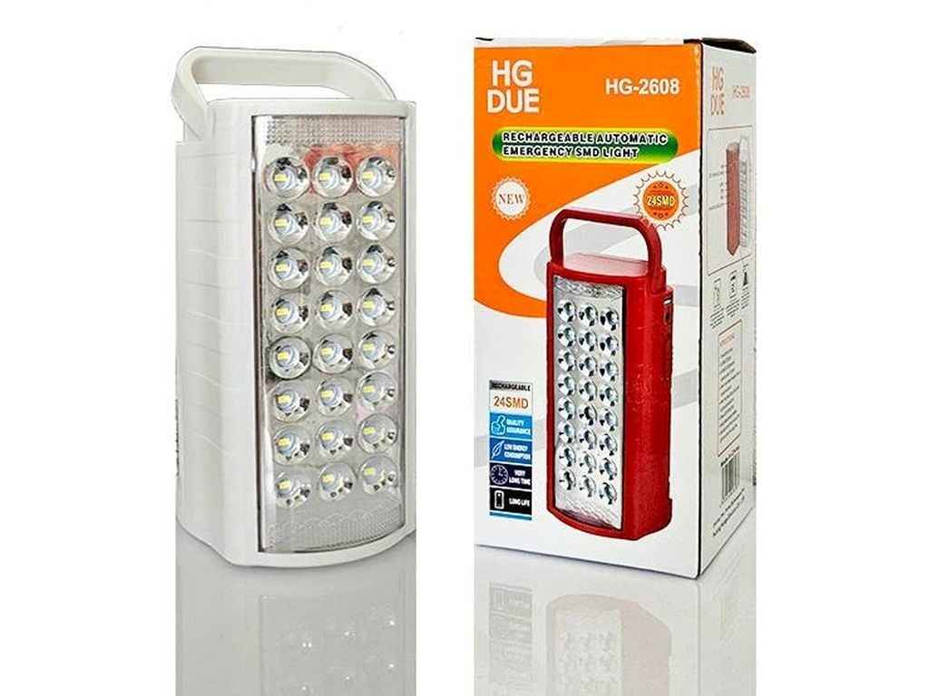 Свiтильник аварійного освітлення 95*100*210мм 250Lm 6500K 6000mAh 24 LED HD-2608 з Power Bank (аналог Almina) ТМHG DUE