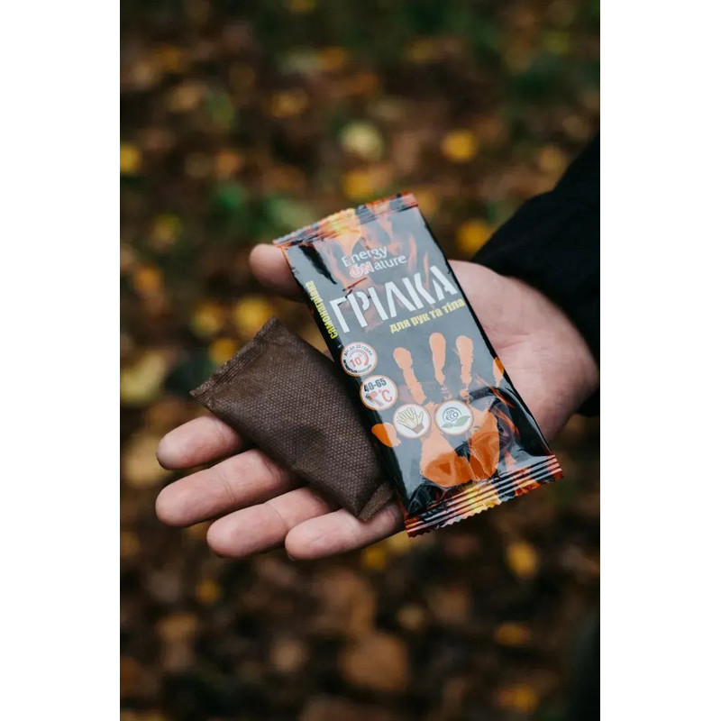 Самонагрівна грілка для рук та тіла – надійний і ефективний спосіб забезпечити комфорт та захист від переохолодження в умовах низьких температур. Також відома як пакет-грілка, hand warmer/body warmer або heat pack.Основні характеристики грілки:Розмір грілки 5х9см.Нагрівається від 40° до 55°Віддає тепло до 12 годинВ упаковці 1шт.Склад грілок: залізний порошок, сіль, активоване вугілля, вода, вермикуліт.Принцип дії грілки - при контакті з повітрям, відбувається екзотермічна реакція: окислення пудри заліза, при якому виділяється велика кількість тепла.Спосіб застосування грілки:відкрити зовнішній пакет;дістати грілку та тримати на повітрі протягом 1-3хв. для активації;для швидкої реакції – струсити;помістити в елемент одягу (рукавиці, кишеня), без значного доступу повітря;після використання утилізуйте грілку як побутове сміття.Під час роботи грілки відсутні будь-які випари шкідливих речовин