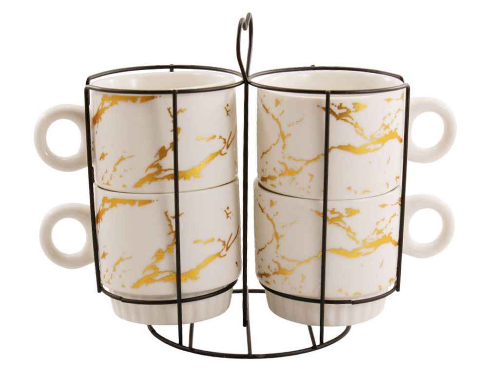 Набiр чайний 4пр. 250мл фарф. на стійці Білий мармур (под.уп.) 676-8 ТМ GRAZIE