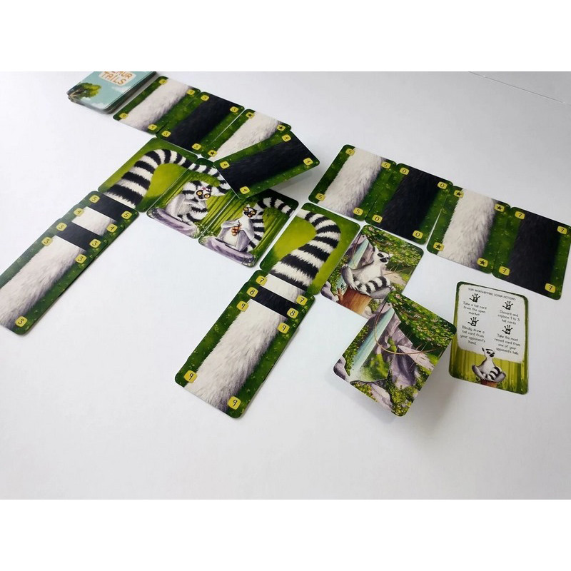 Яскраві пригоди мадагаскарських пухнастиків! "Лемурячі хвости" - це весела та динамічна настільна гра, де ти керуєш зграєю кумедних лемурів, які змагаються за найсмачніші фрукти в джунглях! Головна фішка гри - унікальні смугасті хвости лемурів, які не лише виглядають круто, але й стають ключем до перемоги в цих шалених перегонах!Сюжет та атмосфера Уяви сонячний день на Мадагаскарі. Зграї кмітливих лемурів вистрибують із крон дерев, щоб зібрати найкращі фрукти. Вони лазять, стрибають, і, звісно ж, використовують свої довгі хвости, щоб дістатися до найвіддаленіших гілок! Атмосфера гри наповнена яскравими кольорами, веселим настроєм та легким сімейним гумором. Якщо тобі подобаються ігри з милими тваринками, "Лемурячі хвости" змусять тебе посміхатися від першої до останньої хвилини!Ігровий процес Формат гри - легка стратегія з елементами перегонів та збирання ресурсів. Гравці керують своїми лемурами, пересуваючи їх джунглями, збираючи різнокольорові фрукти, та використовуючи особливі здібності своїх пухнастих підопічних. Основні механіки включають рух по ігровому полю, збір сетів та взаємодію між гравцями через спеціальні картки дій. Партія триває 25-35 хвилин і розрахована на 2-5 гравців - ідеально для сімейного ігрового вечора з дітьми!Що робить гру особливою?Яскраві компоненти з детальними фігурками лемурів, кожен зі своїм унікальним смугастим хвостом!Доступні правила, які можна пояснити за 5 хвилин, але тактичні рішення, що тримають у напрузі всю гру.Баланс між стратегією та удачею - ідеальний для сімейної гри, де діти та дорослі грають на рівних.Якщо ти шукаєш настільні ігри для дітей з елементами стратегії, "Лемурячі хвости" стануть чудовим вибором. А для ще більш казкових пригод, перевір нашу колекцію сімейних ігор.Для кого підходить гра? "Лемурячі хвости" ідеально підійдуть для родин з дітьми від 6 років, дружніх посиденьок з новачками у світі настільних ігор або просто для тих, хто цінує милих тваринок та легкі, але захоплюючі ігрові механіки. Особливо сподобається любителям яскравих компонентів та невимушеної атмосфери.Пригоди чекають на тебе у джунглях! Замовляй "Лемурячі хвости" зараз і перенесись у барвистий світ веселих пухнастиків! А якщо шукаєш більше ігор для дітей, зазирни в розділ дитячих настільних ігор - там знайдеться багато цікавих варіантів для юних гравців!Що всередині?40 карт білого хвоста40 карт чорного хвоста4 двобічних карти лемурів4 двобічних карти початку хвоста12 карт лемурів-сонцепоклонників8 карт-джокерів1 карта кінця гри1 карта-пам’ятка