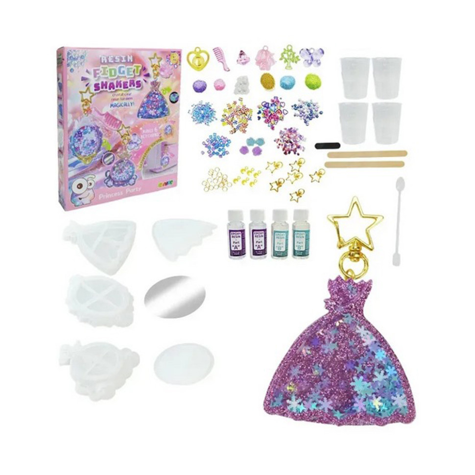 Створи свій маленький шедевр! Цей набір дозволяє дитині проявити фантазію і створити яскравий особистий брелок, який можна показати друзям або носити з собою.Комплектація:До набору входять:- 4 пляшечки з компонентами (по 2 пляшечки кожного компоненту А і В);- 3 форми для створення брелоків;- 6 прозорих пластикових кришок для брелків;- 4 кольори глітеру;- намистини та фігурні посипки (є з фруктовим ароматом);- 6 шармів;- 6 тримачів для брелоків;- 2 мірні пластикові склянки;- 2 палички для змішування;- 1 ложка;- 1 пара захисних поліетиленових рукавичок;- 1 захисний поліетиленовий фартух;- ілюстрована покрокова інструкція