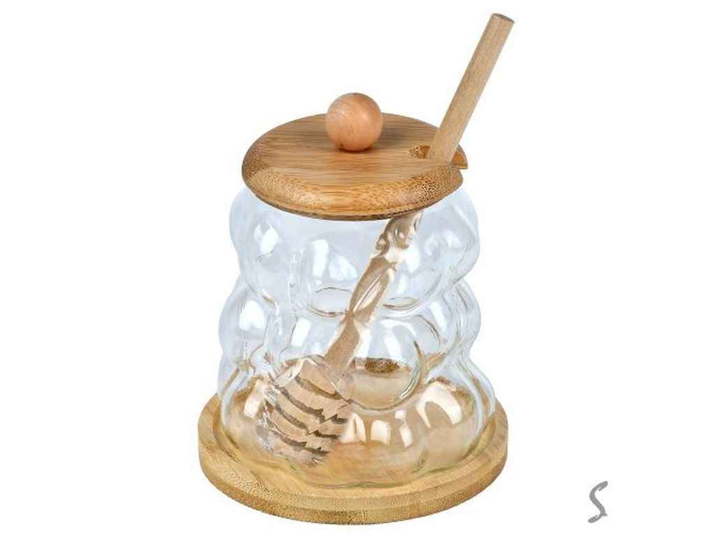 Банка для меду з ложкою на бамбуковій підставці 10*10*12,5см 360мл R99461 ТМ STENSON