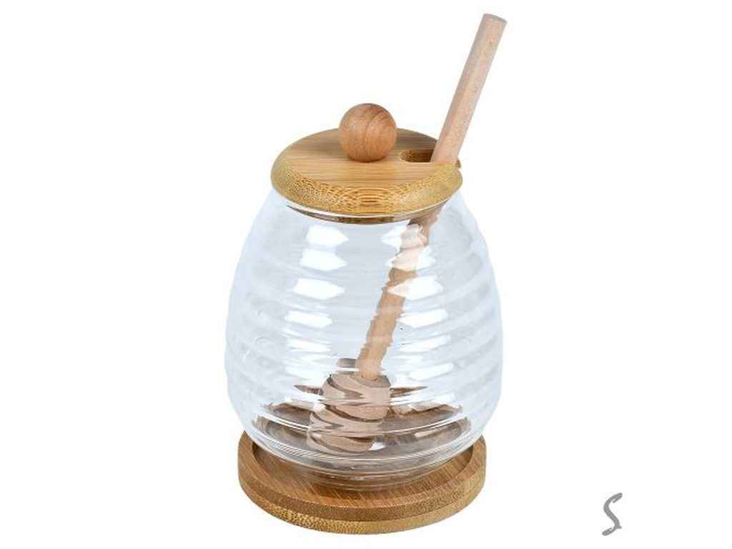 Банка для меду з ложкою на бамбуковій підставці 9*9*13см 400мл R99463 ТМ STENSON