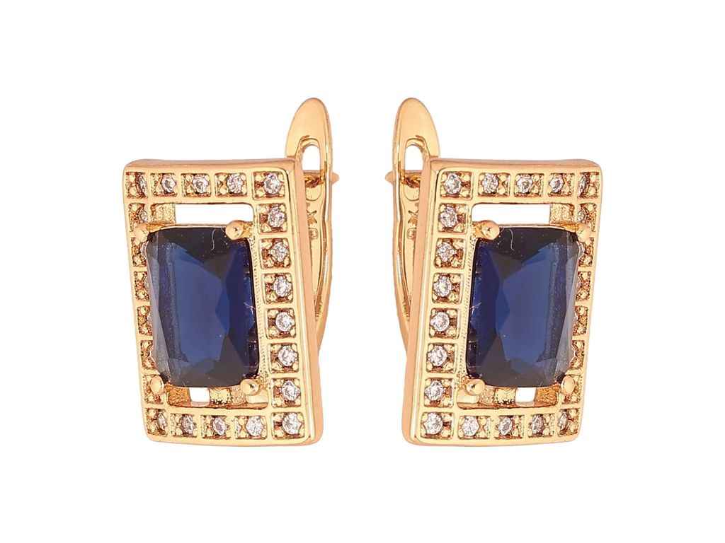 Сережки англійська застібка Позолота 18К Прямокутники з синіми кристалами (310080) ТМ XUPING