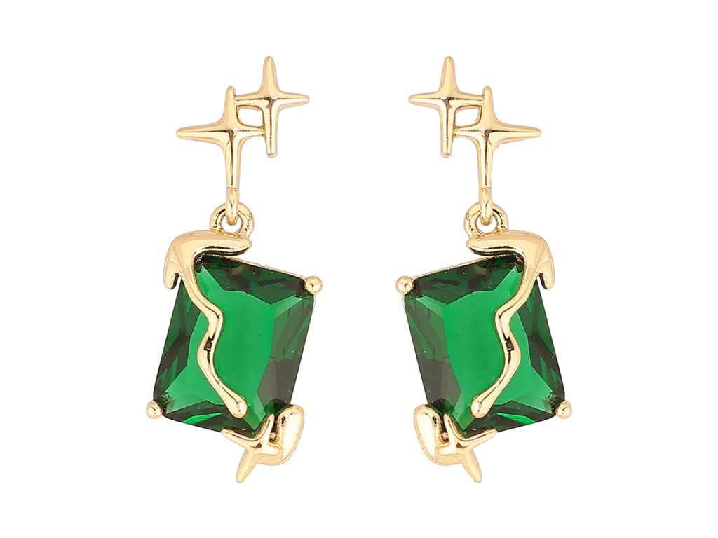 Сережки пусети Позолота 14K Зірки з зеленими кристалами (310698) ТМ XUPING