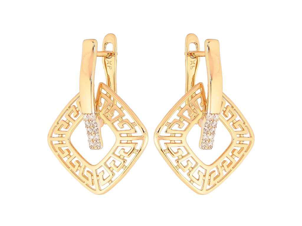 Сережки англійська застібка Позолота 18K Родій Грецький візерунок з кристалами (311334) ТМ XUPING