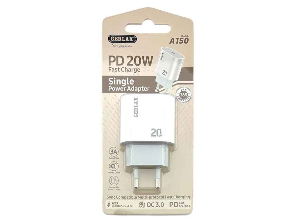 Мережевий зарядний пристрій PD Type-C A150 PD20W/QC3.0 білий ТМ GERLAX