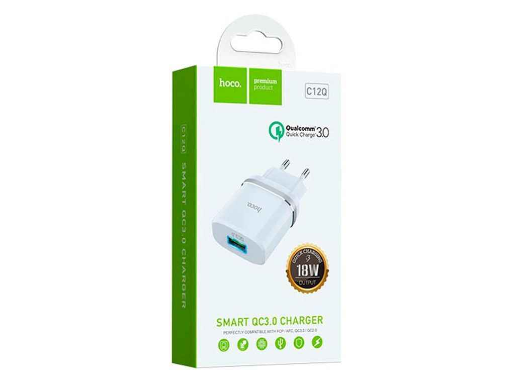 Мережевий зарядний пристрій USB C12Q 3A/1USB/18W/QC3.0 білий ТМ HOCO