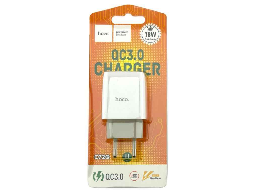 Мережевий зарядний пристрій USB C72Q 1USB/18W/QC3.0/блістер білий ТМ HOCO